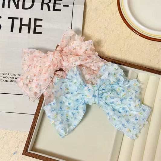 Pastel Chiffon & Lace Bow Clip (Single Clip)