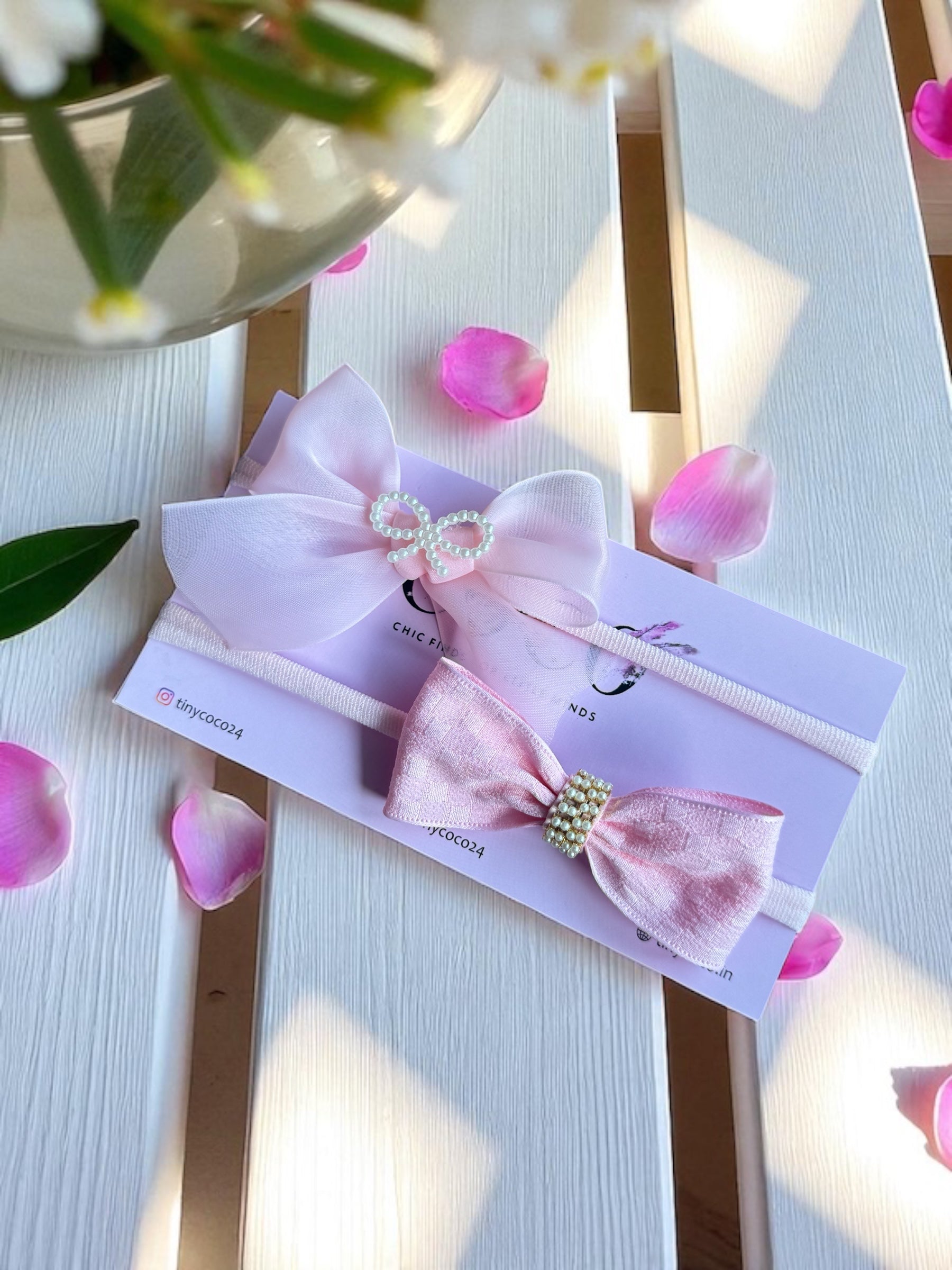 Delicate Pearl & Sparkle Bow Bands (Pink Duo)