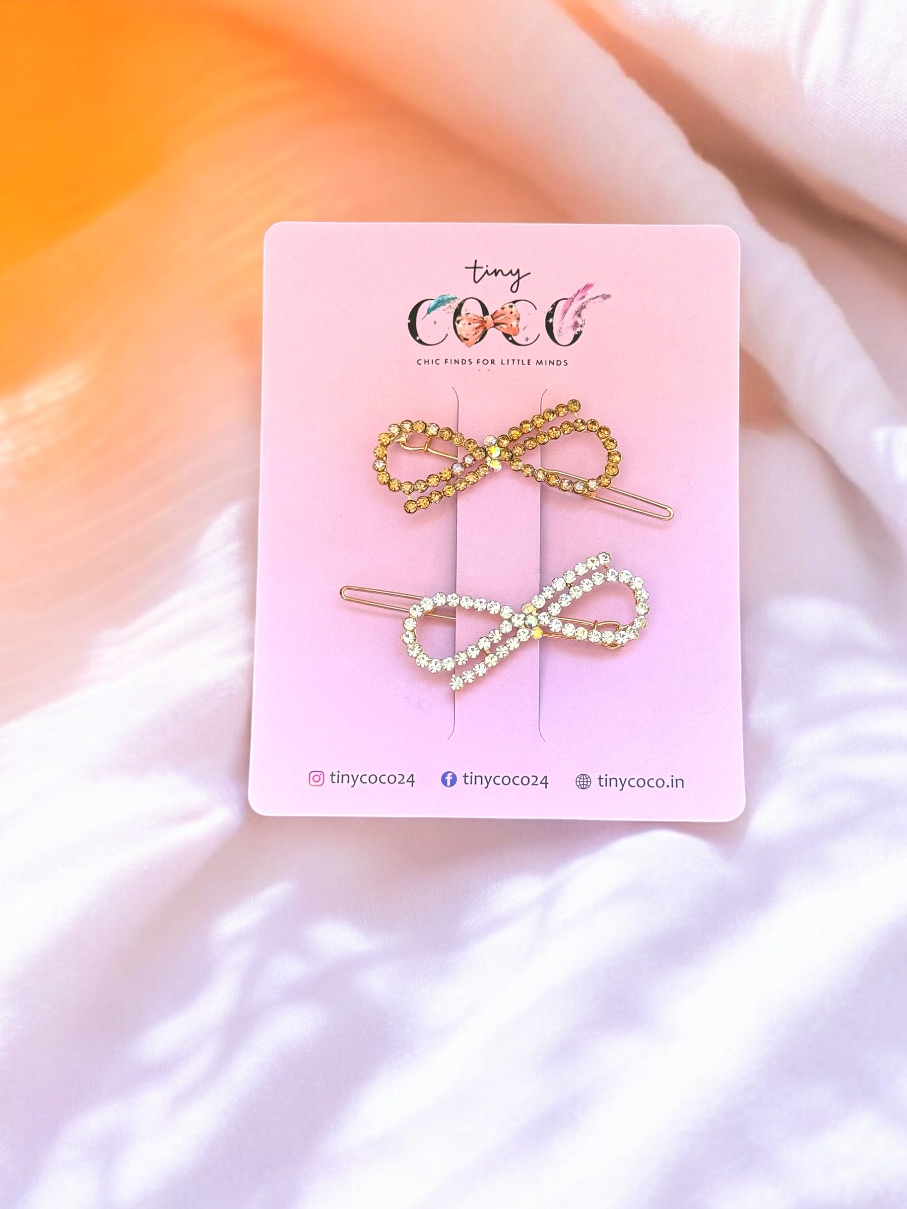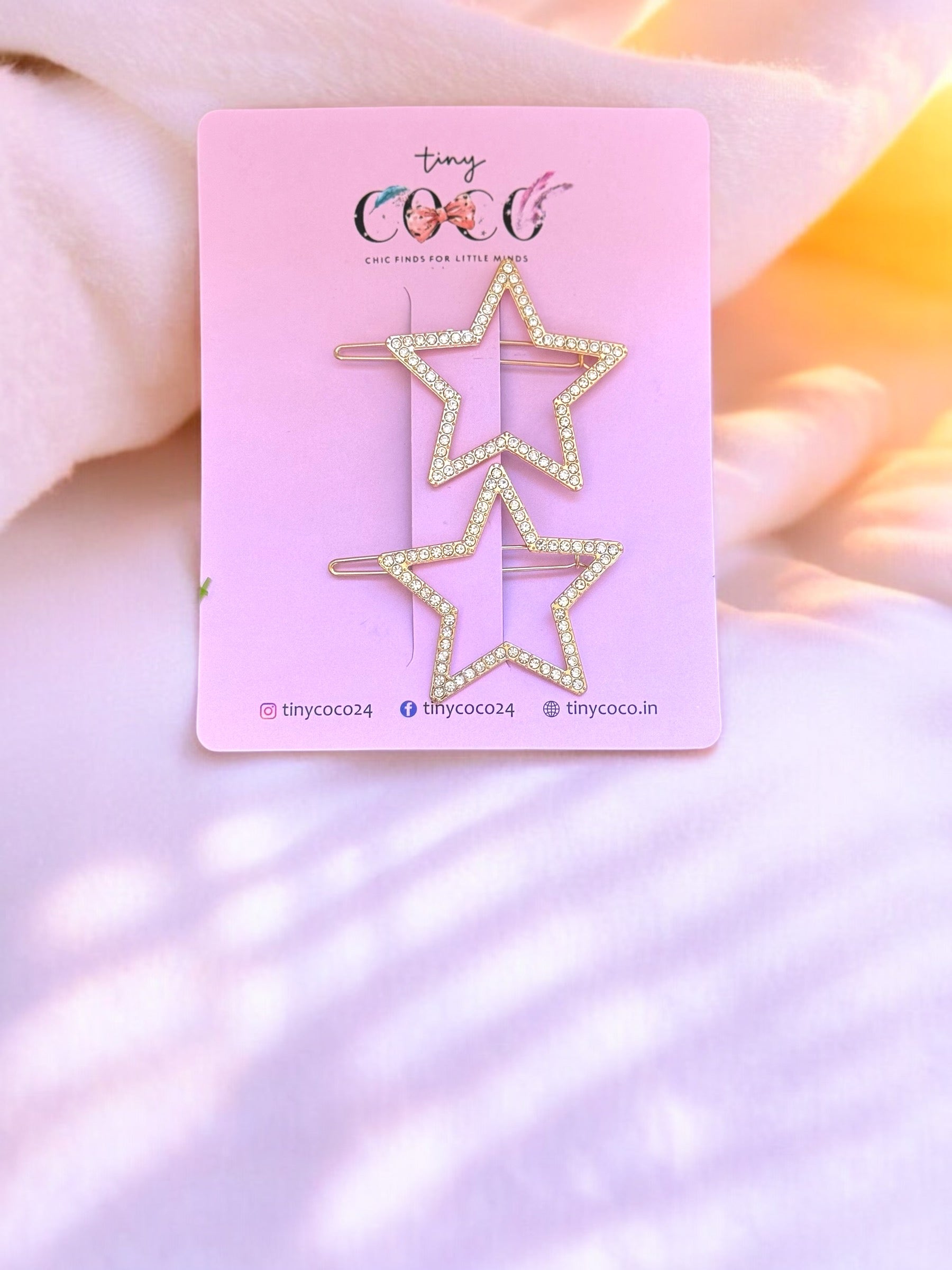 Add a touch of elegance and sparkle to your little one's festive look with this assortment of hairpins. The set features a variety of designs, including hearts, stars, flowers, and a starfish, all adorned with shimmering pearls and rhinestones. These hairpins are perfect for creating a variety of stylish hairstyles for the Diwali season.