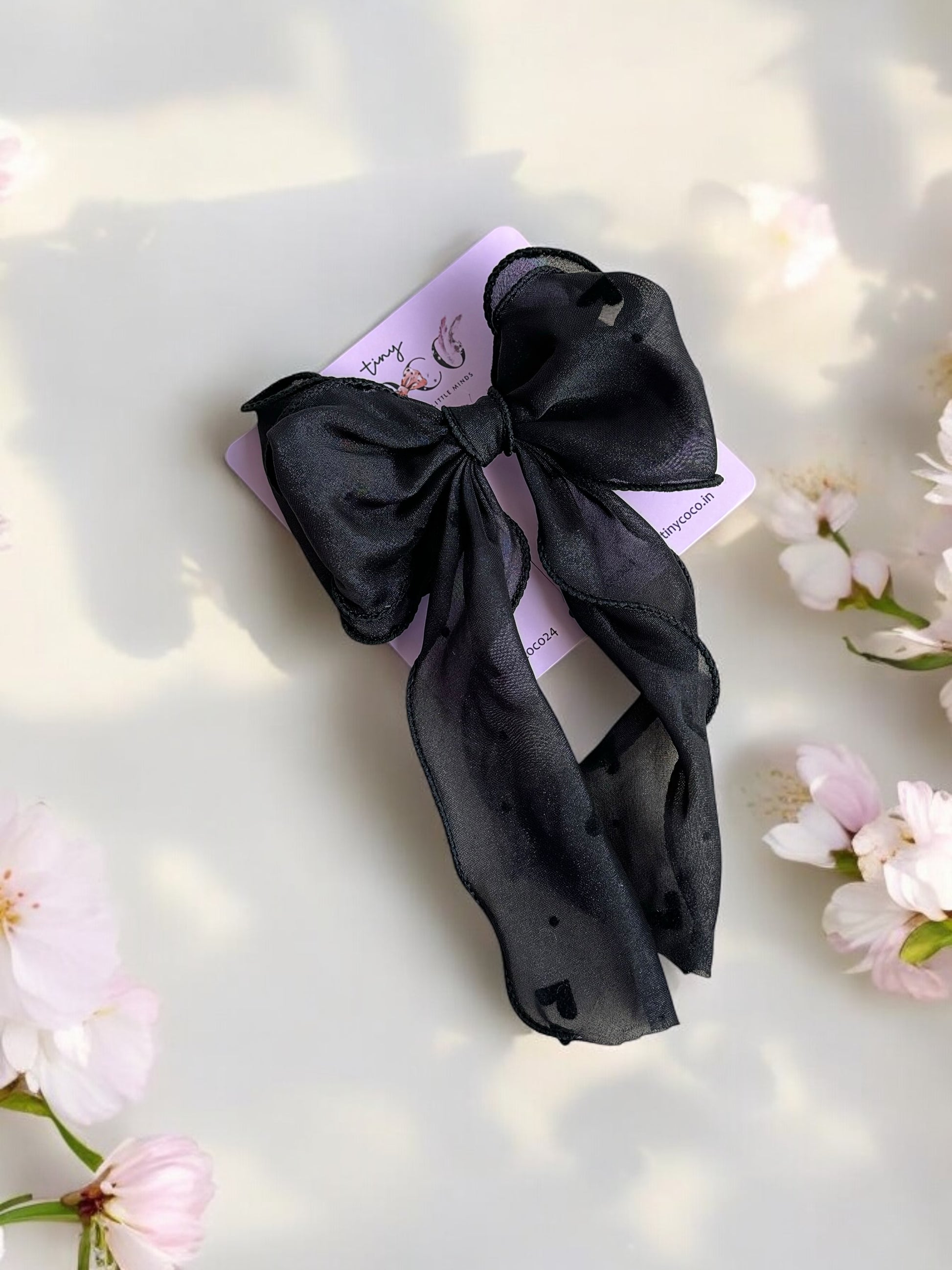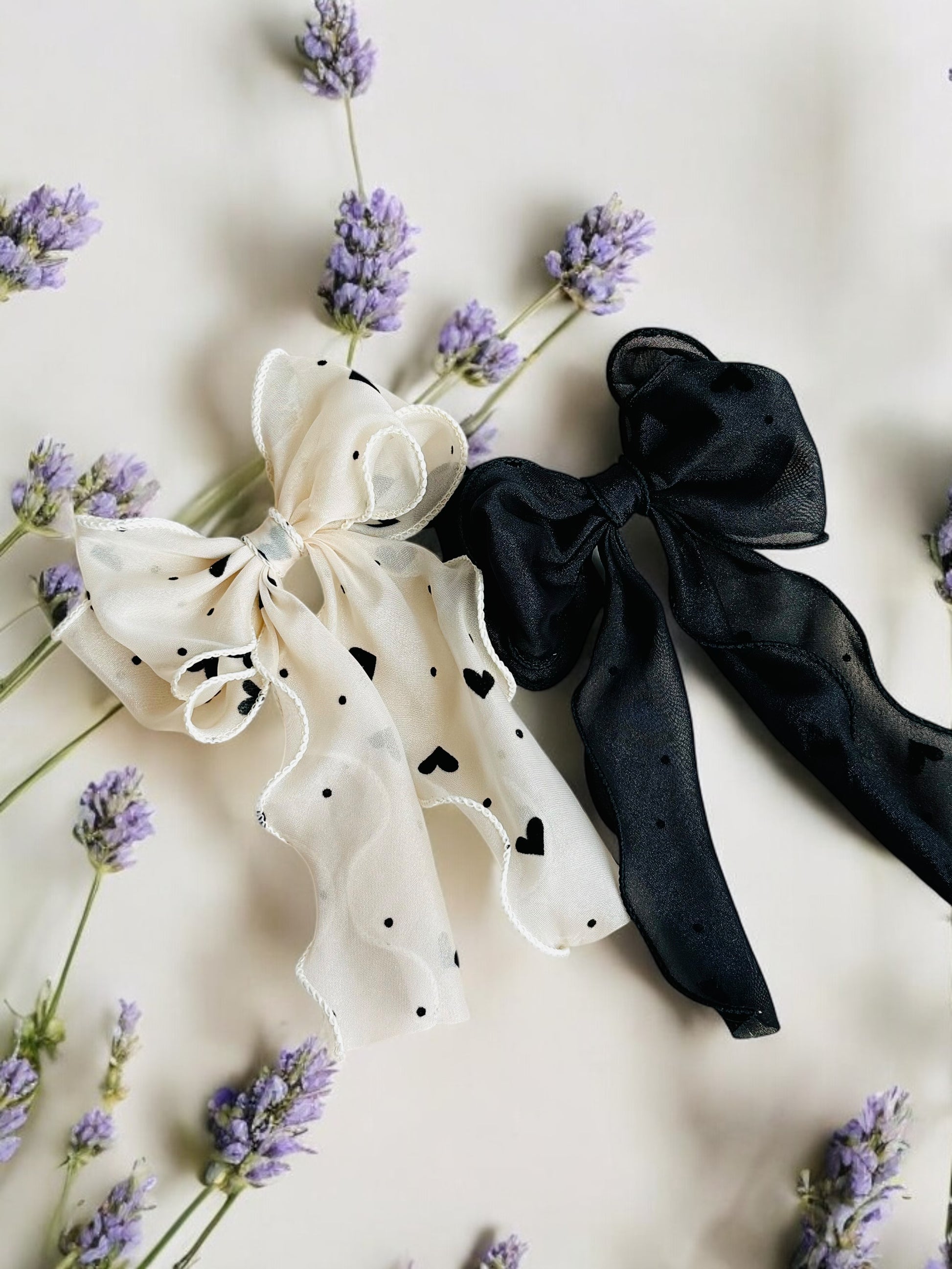 Heart Bows in Black and White are a modern twist on a classic style! These stylish hair bows feature a chic black and white color scheme, making them perfect for any fashion-forward little one. They're lightweight and add a touch of sophistication to any hairstyle.