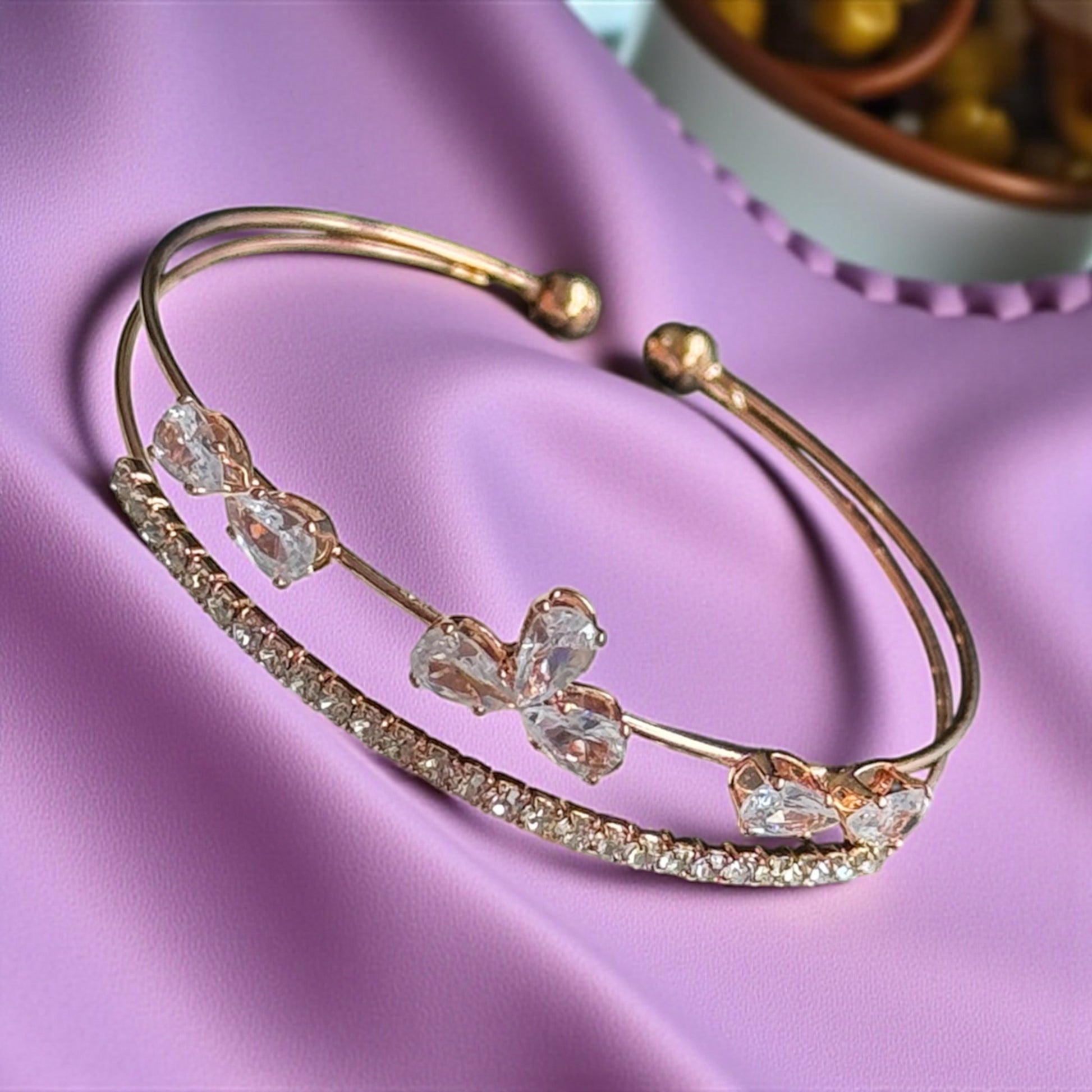 The Princess Sparkle Cuff is designed for high-impact fun and delicate elegance! This adjustable, open-cuff bracelet features two lovely layers: the first showcases a charming petal or floral design made from brilliant, marquise-shaped faux crystals. The second layer is a sleek band fully dusted with tiny, sparkling stones. The lustrous gold-toned and silver-toned finish is perfect for little royalty. Best of all, this cuff is easy for kids to slip on and off themselves and is ideal for complementing birthday outfits, school recitals, or a dazzling day of dress-up!