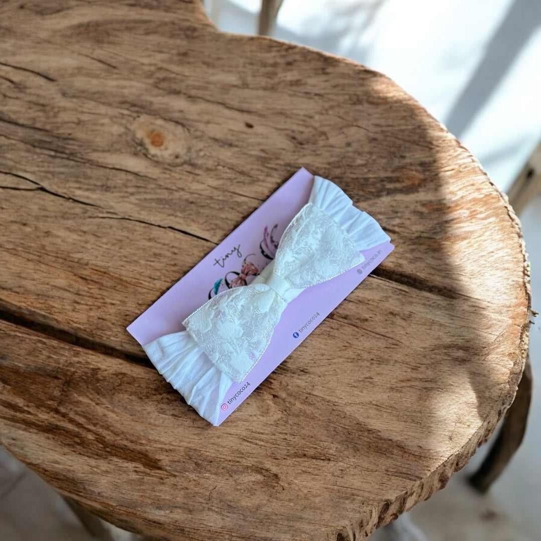 The Whispers of Lace Headband brings a delicate, featherlight beauty to your little one. The finely stitched lace bow sits gently on an ultra-soft, comfortable band, offering an elegant look that feels barely there. It's the perfect gentle accessory for newborns and toddlers, adding a sweet, quiet charm to any outfit.